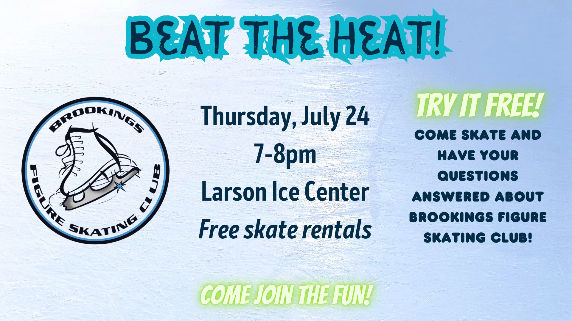 Come skate and have your questions answered about Brookings Figure Skating Club!