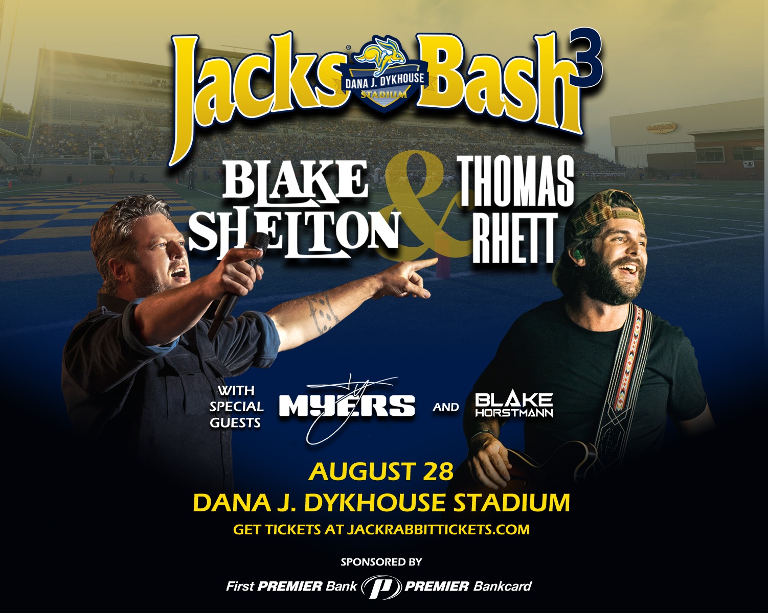 Jacks Bash 3, featuring Blake Shelton and Thomas Rhett with special guests Ty Myers and DJ Blake Horstmann, is coming to Dana J. Dykhouse Stadium on Thursday, August 28! The concert is sponsored by First PREMIER Bank and PREMIER Bankcard.