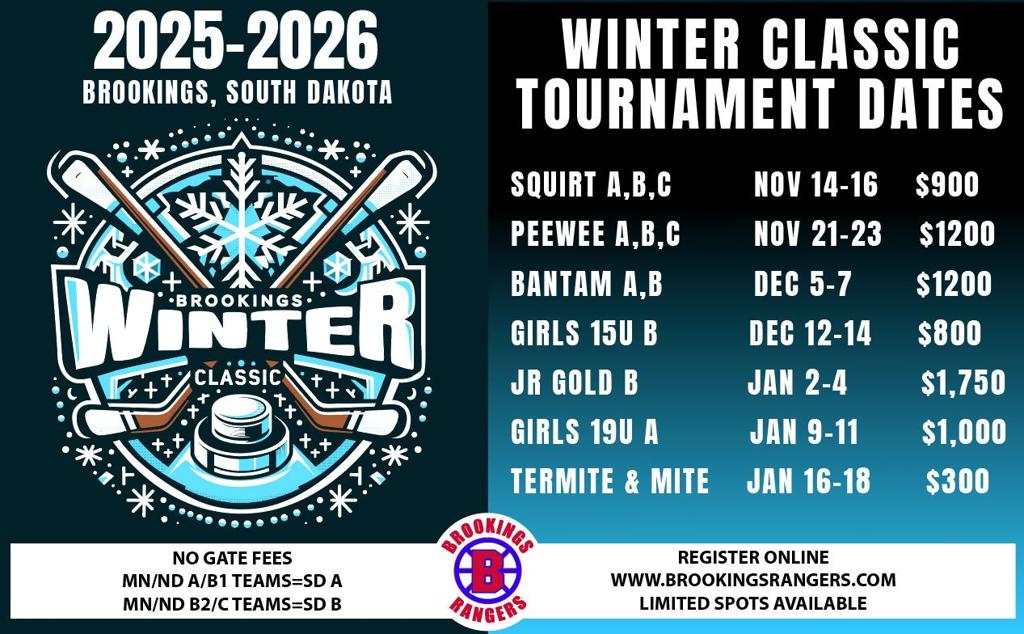 Cheer on your favorite team at the Brookings Winter Classic Tournament. All games are held at the Larson Ice Center.