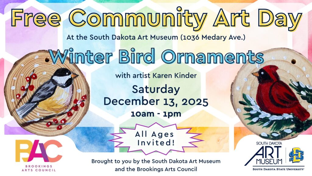 Join us for another FREE Community Art Day! Come get creative on Saturday, December 13th, from 10 a.m. to 1 p.m. at the South Dakota Art Museum (1036 Medary Ave., […]