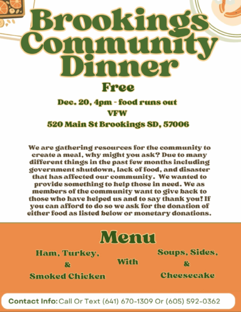 Free meal to anyone and everyone of Brookings. We know this last year has been hard on many in Brookings, from downtown to residents - and we wanted to do […]