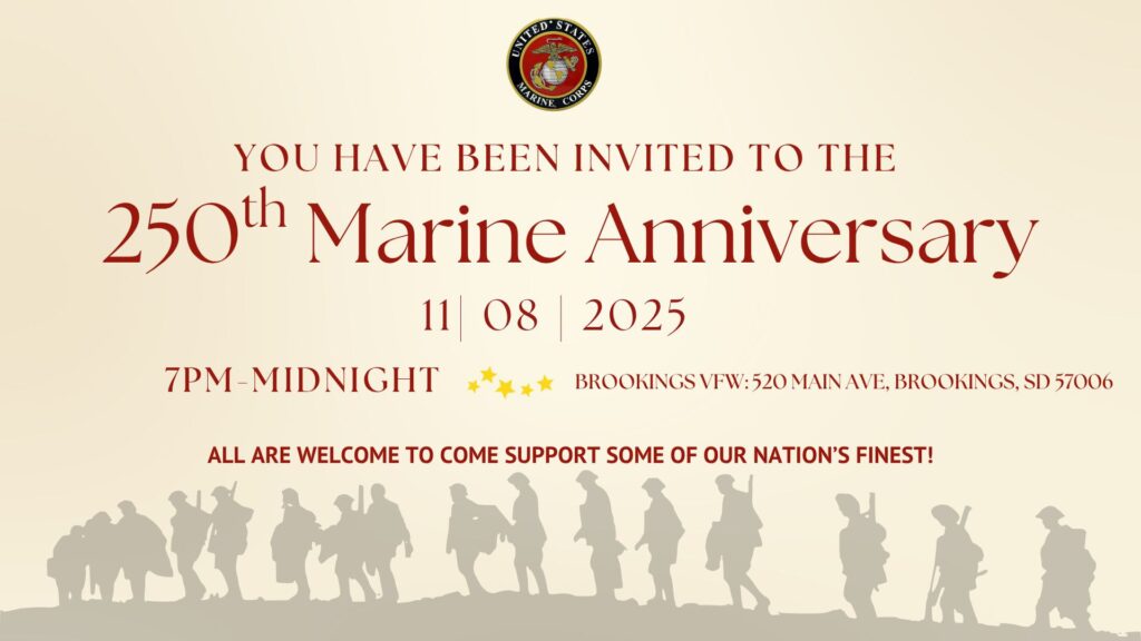 Join us Saturday November 8th from 7 p.m.- Midnight at the Brookings VFW- 520 Main Ave. Brookings. Parking will be available behind the building in the First Bank and Trust […]