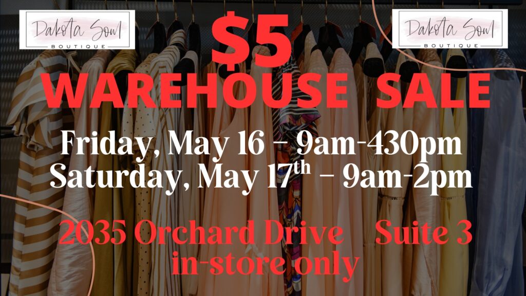 HUGE $5 warehouse sale! We will be moving inventory around and creating a huge warehouse sale where everything is only $5. Shorts, tops, sweats, pants. A little bit of everything in sizes small - XL! This will be at our Orchard Drive location and is an in-person only sale. 2035 Orchard Drive, Suite 3, Brookings, […]