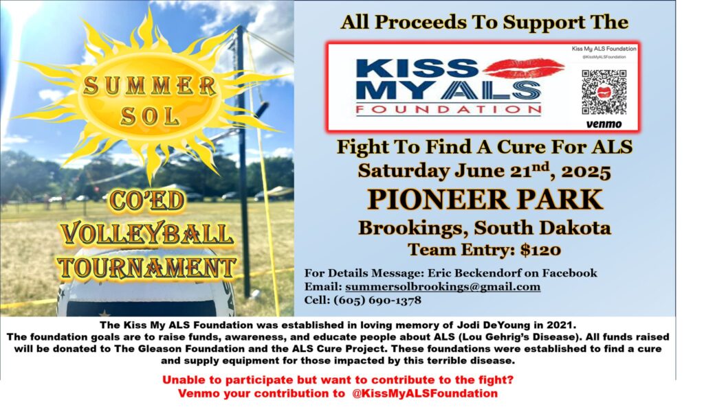 Summer Sol is a coed volleyball tournament played on the grass at Pioneer Park in Brookings. All proceeds from the tournament are donated to fight for a cure of ALS […]