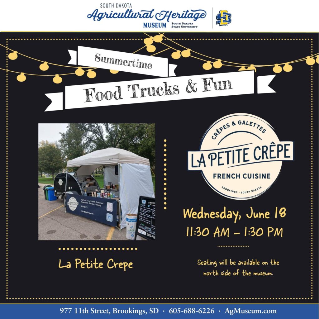 On June 18, enjoy a taste of France with Le Petite French Cuisine food truck offering sweet crepes and savory galettes from 11:30 - 1:30. Seating will be available on the north side of the South Dakota Agricultural Heritage Museum (behind the museum). We will move indoors for inclement weather. Check their social media channels […]