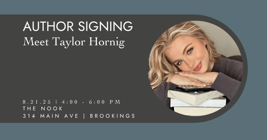 Meet Local Author Taylor Hornig at the Nook! Join us on Thursday, August 21st from 4:00 – 6:00 p.m. to meet Brookings native Taylor Hornig + learn more about her debut fantasy novel, ‘Over the River’. Taylor grew up in Madison, SD, and now balances life as a wife, mom to a busy toddler, and […]